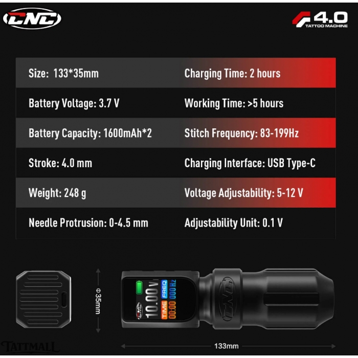 CNC E77 Wireless Tattoo Machine Dual Batteries
