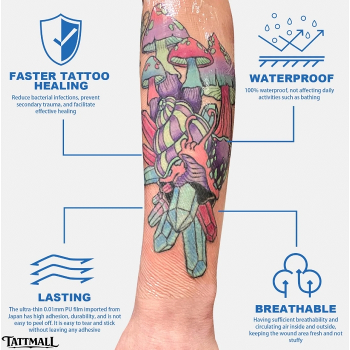 - Multi-Functional: It serves as a tattoo aftercare wrap, dressing fixator, and waterproof shield against contaminants, ensuring optimal healing and protection.